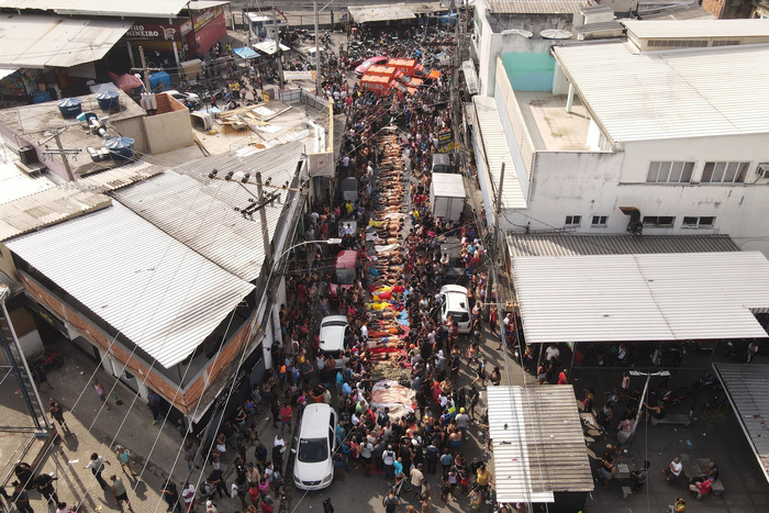 Cubiertos con mantas o lonas improvisadas , los cadáveres fueron depositados uno al lado del otro, en la Plaza San Lucas , de la favela Complexo da Penha. Allí también había muertos del Complexo do Alemão, donde están las otras comunidades atacadas por la Policía Militar. Junto a los cuerpos decenas de vecinos iban del desconsuelo a la indignación.
