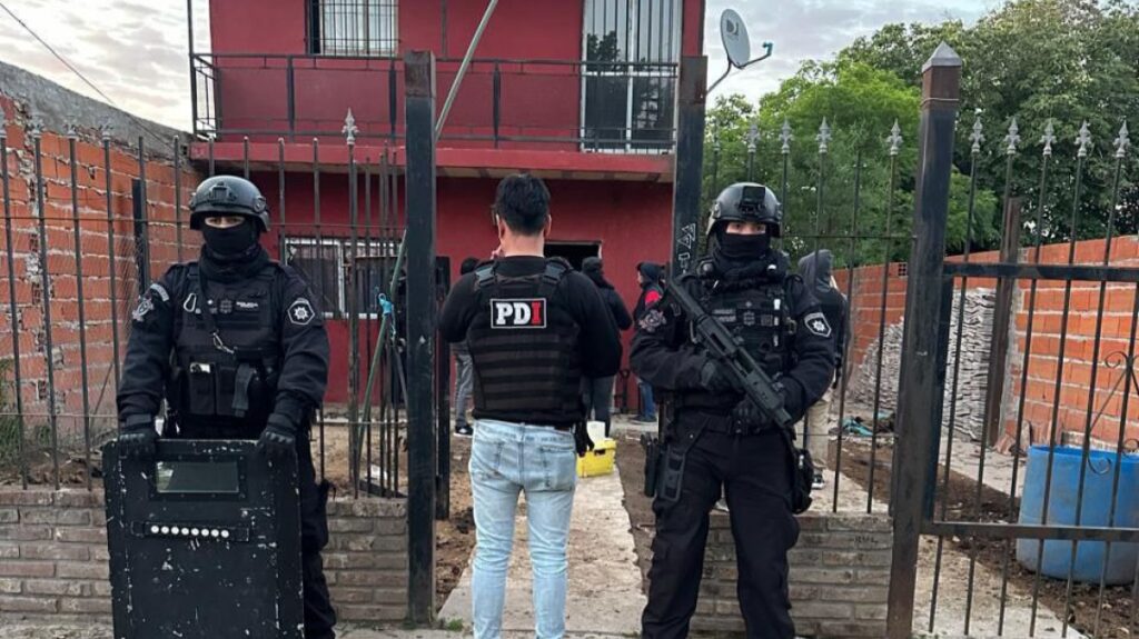 La Policía de Investigaciones (PDI) con la colaboración de grupos tácticos de la Policía provincial, fuerzas dependientes del Ministerio de Justicia y Seguridad, realizó hoy múltiples allanamientos en las localidades de Capitán Bermúdez y Granadero Baigorria, en los que detuvo a cuatro personas y secuestró droga, un arma de fuego y municiones, vehículos, dinero en efectivo, teléfonos celulares, entre otros elementos. Los detenidos serían integrantes de la banda de Walter Francisco “Viejo” González, quien se encuentra preso en un pabellón de alto perfil en la Unidad Penitenciaria 11 de Piñero, acusado de mandar a balear un colectivo que trasladaba agentes penitenciarios en marzo de 2024.