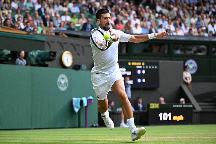 Luego fue el turno de Djokovic, quien sigue haciendo historia en el torneo que supo conquistar en siete ocasiones. Fue triunfo ante el batallador italiano Flavio Cobolli por 6-7 (6), 6-2, 7-5 y 6-4 para llegar por 16ª ocasión a las semifinales de Wimbledon.
