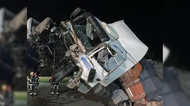 La colisión se dio cerca de las 2.50 entre un rodado Ford Cargo con chasis acoplado dedicado al transporte de cereales, que regresaba vacío a la localidad de San Jorge, y un Mercedez Benz semiacoplado, cargado con resmas de papel. El segundo vehículo quedó volcado sobre la ruta y complicó las tareas de rescate, según el cuerpo de bomberos voluntarios cañadense.