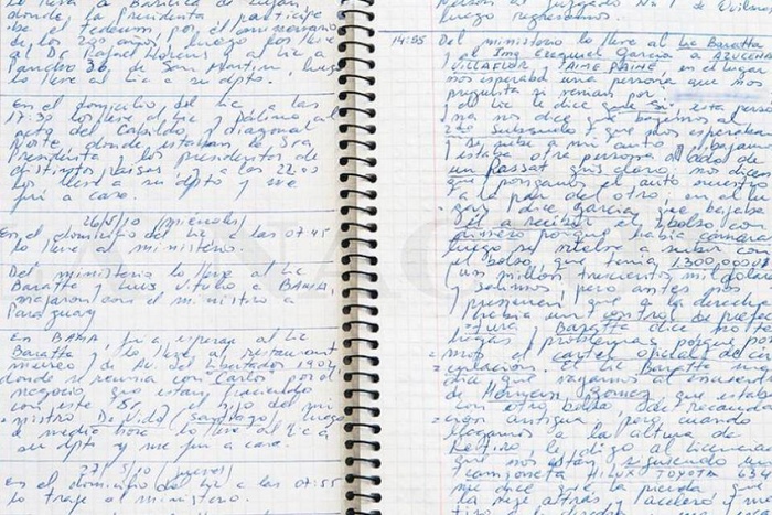 Hay otro punto clave. Las pericias confirman también las diferencias entre los primeros cuadernos (1 a 6) y los últimos (7 y 8). Los primeros fueron un verdadero diario, con anotaciones del tipo “salimos de tal lugar y fuimos a tal otro”, es decir un resumen de recorridos que suele hacer un remisero para después cobrar lo que corresponde. En cambio, los últimos ya hablan de dinero, de bolsos cuyo contenido el chofer no vio, pero que evalúa en miles de dólares o pesos. Esos últimos cuadernos están escritos a otro ritmo, de corrido, no al tiempo de los viajes sino después. Y según un estudio de la Facultad de Filosofía y Letras de la UBA, contienen palabras que el chofer no manejaba -“no se corresponde al lenguaje de Centeno”- y todo indica que fueron dictados.