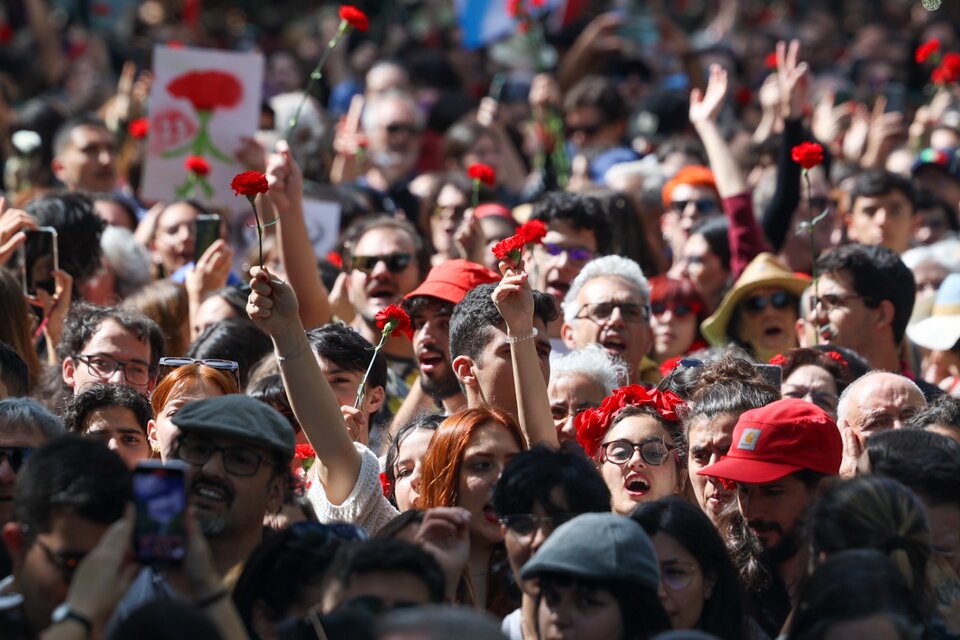 “25 de abril, ¡siempre! ¡Fascismo, nunca más!”, gritaron los manifestantes, con claveles rojos en la mano o en el ojal. “Es una gran alegría estar aquí”, declaró a la agencia AFP Helena Pereira, que tenía dieciséis años cuando se produjo el alzamiento que dio un vuelco en la historia de Portugal.
