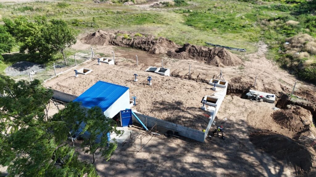 El proyecto, ejecutado por la UTE Werk Constructora SRL, Del Sol Constructora S.A. y Rovial S.A., presenta un avance físico del 90,29%. En esta etapa final, se completan los trabajos en el Centro de Distribución de San Vicente, que registra un avance del 98% e incluye una cisterna de almacenamiento, cámara de llegada y sala de bombas, donde ya se finalizaron tareas de impermeabilización y automatismo eléctrico.