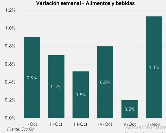 El informe, con datos hasta el 7 de noviembre, destacó que los alimentos consumidos dentro del hogar subieron 1,1% en la primera semana, lo que representa una aceleración de 0,9 puntos porcentuales respecto a la semana anterior. En tanto, los alimentos fuera del hogar avanzaron 1,7%, consolidando una tendencia alcista que incide en el consumo cotidiano.