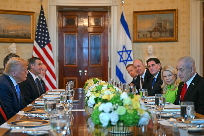 Antes del encuentro con Trump, Netanyahu sostuvo reuniones por separado en la Casa Blair, la residencia oficial para mandatarios extranjeros, con el secretario de Estado, Marco Rubio, y con el enviado especial de Trump para Medio Oriente, Steve Witkoff. Mientras el primer ministro israelí llegaba a la Casa Blanca, un pequeño grupo de manifestantes se congregó fuera del perímetro de seguridad con banderas palestinas y pancartas que lo acusan de cometer un genocidio en Gaza.