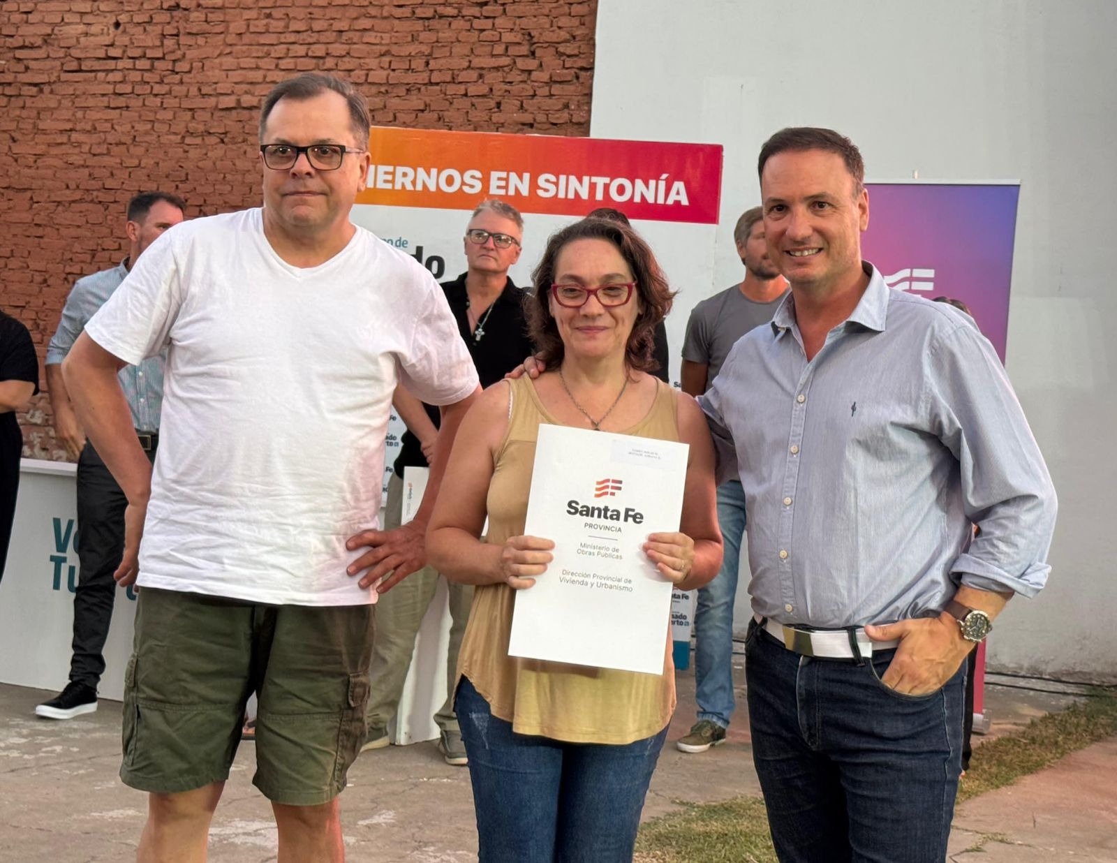 En lo que se refiere al complejo habitacional, comentó que “estas no son viviendas aisladas, son parte de un plan de trabajo junto con el gobierno provincial para poder llevar diferentes etapas”, afirmó. Y agregó un reconocimiento especial “para aquellos que durante mucho tiempo estuvieron esperando su escritura y que hoy reciben el documento para tener la seguridad de que la casa es propia”. En segundo lugar, recordó que el Municipio a través del programa “Nuestro Terreno” ya sorteó más de 300 lotes, y la tercera pata son las 52 viviendas que licitó la provincia este viernes.